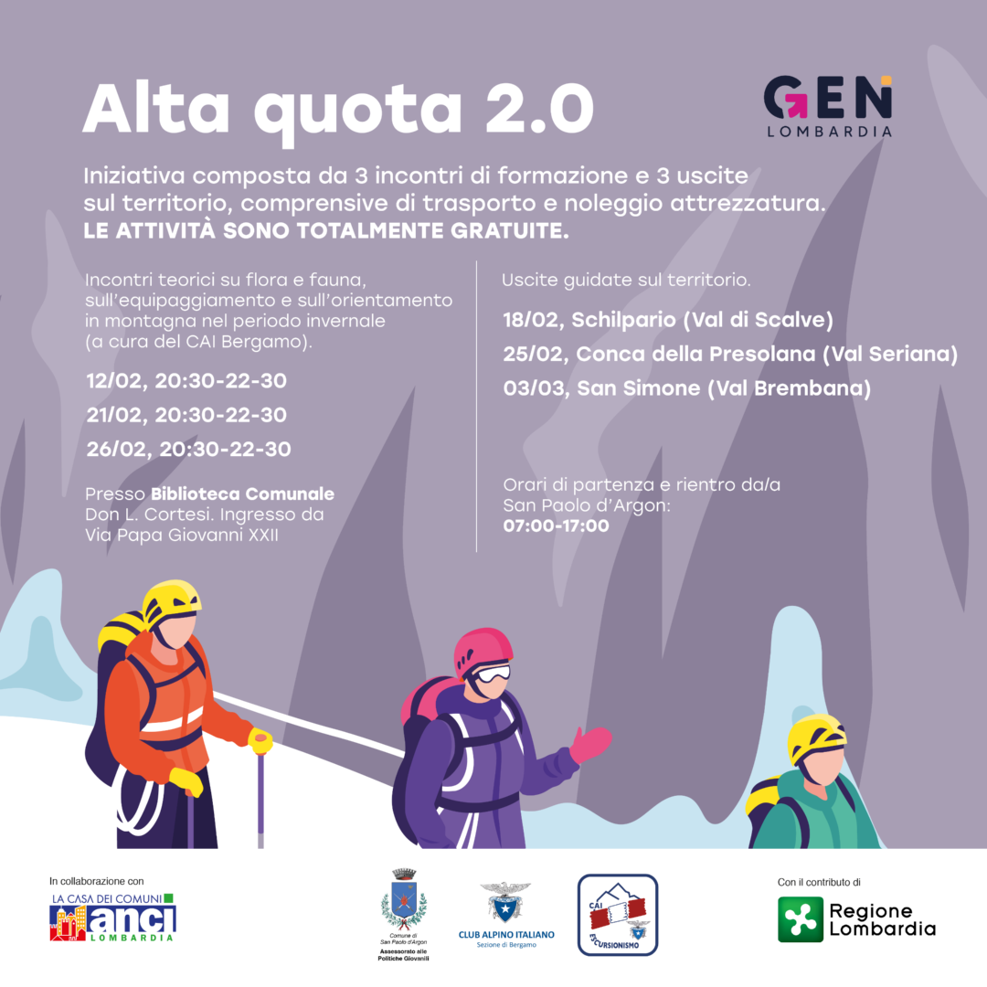 L'Amministrazione Comunale ripropone in collaborazione con il CAI Bergamo tre incontri teorici e tre escursioni alla scoperta del territorio montano lombardo.