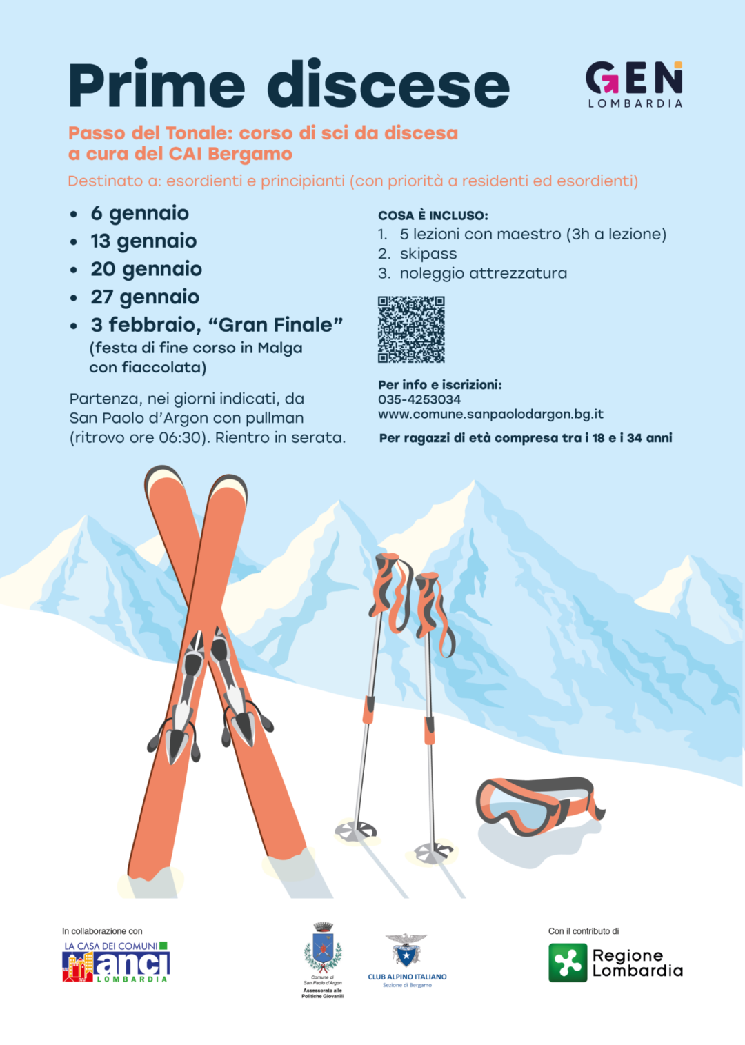 L'amministrazione Comunale, in collaborazione con il CAI Bergamo, propone un corso di sci di discesa.